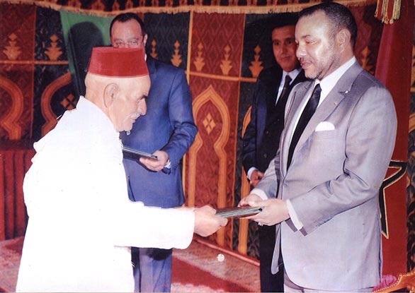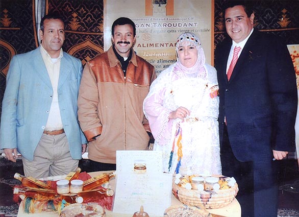 Le fondateur Mohammed Ait Mhand reçoit des mains de sa majesté le roi du Maroc son diplôme de qualité pour les nombreuses récoltes passées et son implication dans le développement du pays . |